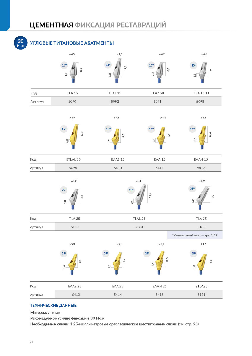 Абатмент 5415 эстетич.титановый IH внутренний шестигр угловой 25 градусов 5,3мм . 3,7/10,9 AlphaBio
