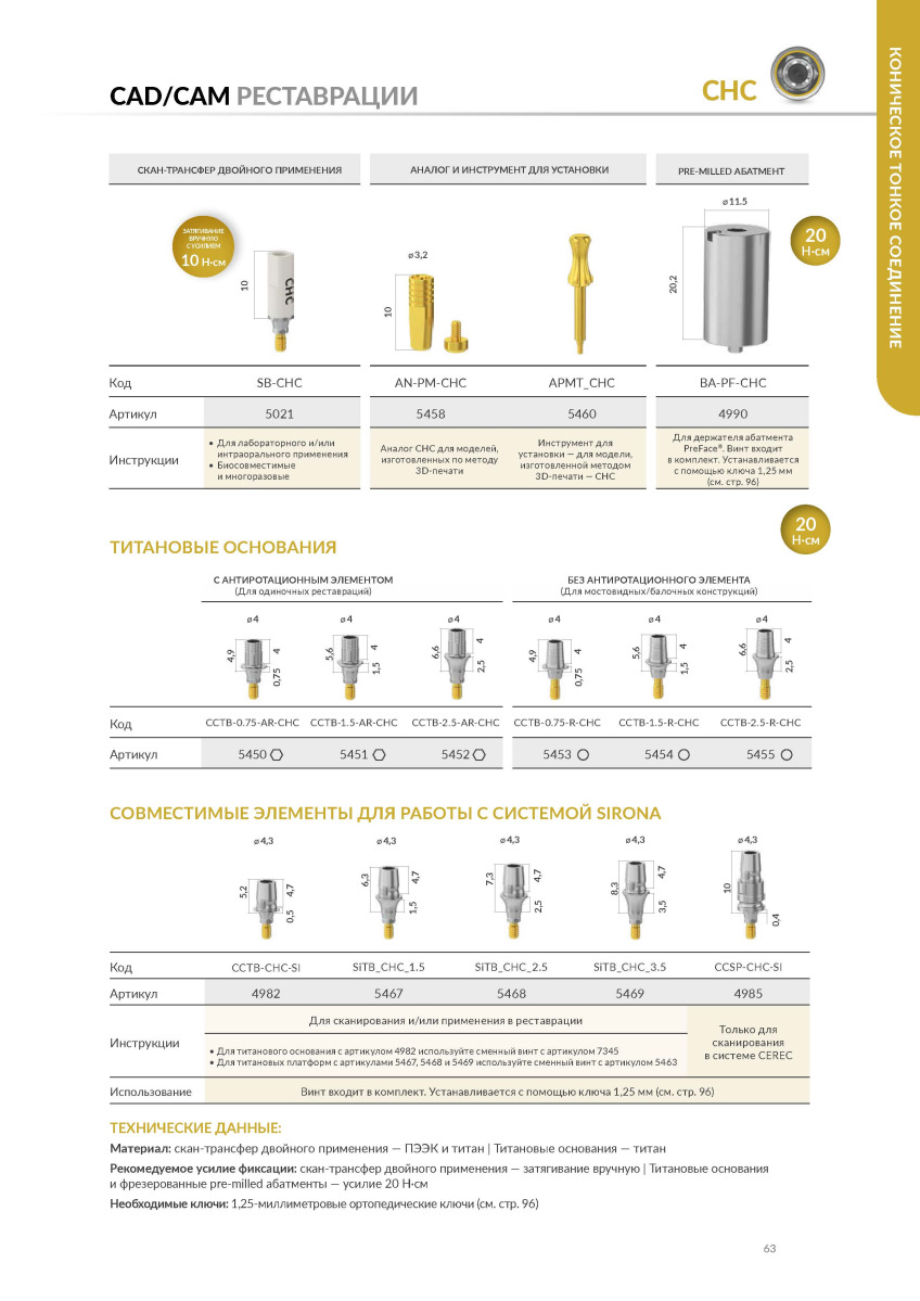 Аналог импланта 5458 (4996) CHC тонкое конусное соединение для CAD/CAM реставраций AlphaBio