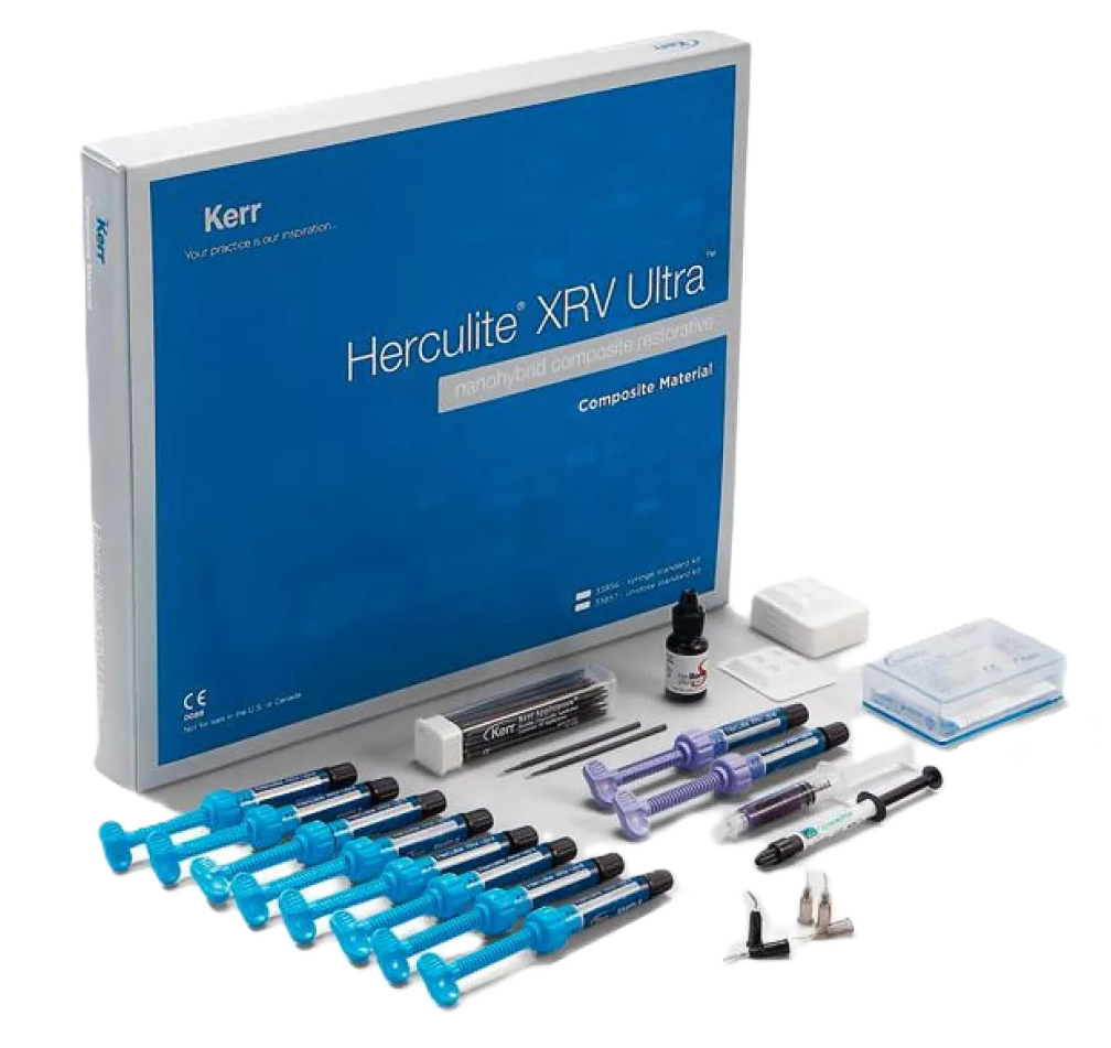 Комплектация: Herculite™ XRV Ultra™ – набор Standard Kit10 шприцев (по 4 г) оттенки эмаль А1, А2, А3, А3.5, В2, В3, C2, D2; дентин А2, А3; 1 шприц (1,7 г) текучего композита Premise™ Flowable с 10 насадками; 1 флакон (5 мл) OptiBond™ Solo Plus; 1 шприц (3 г) протравливающего геля Gel Etchant с 10 насадками; диски OptiDisc™ (12,6 мм) по 15 шт. очень грубых, средних, тонких, ультратонких, 2 дискодержателя; 25 емкостей для смешивания; 50 аппликаторов