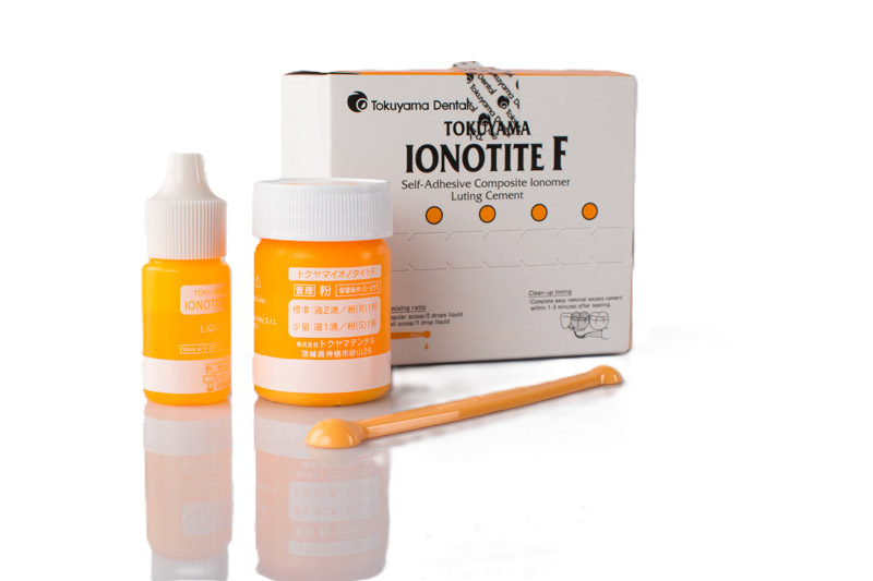 Ionotite F - самоадгезивный модифицированный композитными смолами стеклоиономерный цемент для фиксации. Новое поколение гибридных стеклоиономерных цементов для фиксации несъемных ортопедических конструкций на основе металла.