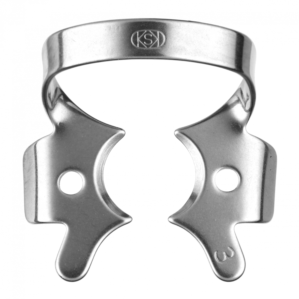Кламп для моляров верхней и нижней челюсти, с невыраженным экватором и/или со значительно разрушенной медиальной поверхностью зуба. Благодаря небольшому размеру щечек клампа, его углы не будут проваливаться в межзубный промежуток.