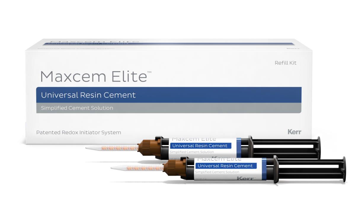 Самопротравливающий самоадгезивный композитный цемент двойного отверждения для непрямых реставраций. В составе Maxcem Elite™ использована та же адгезивная технология, что и в знаменитом семействе OptiBond™ от Kerr.
